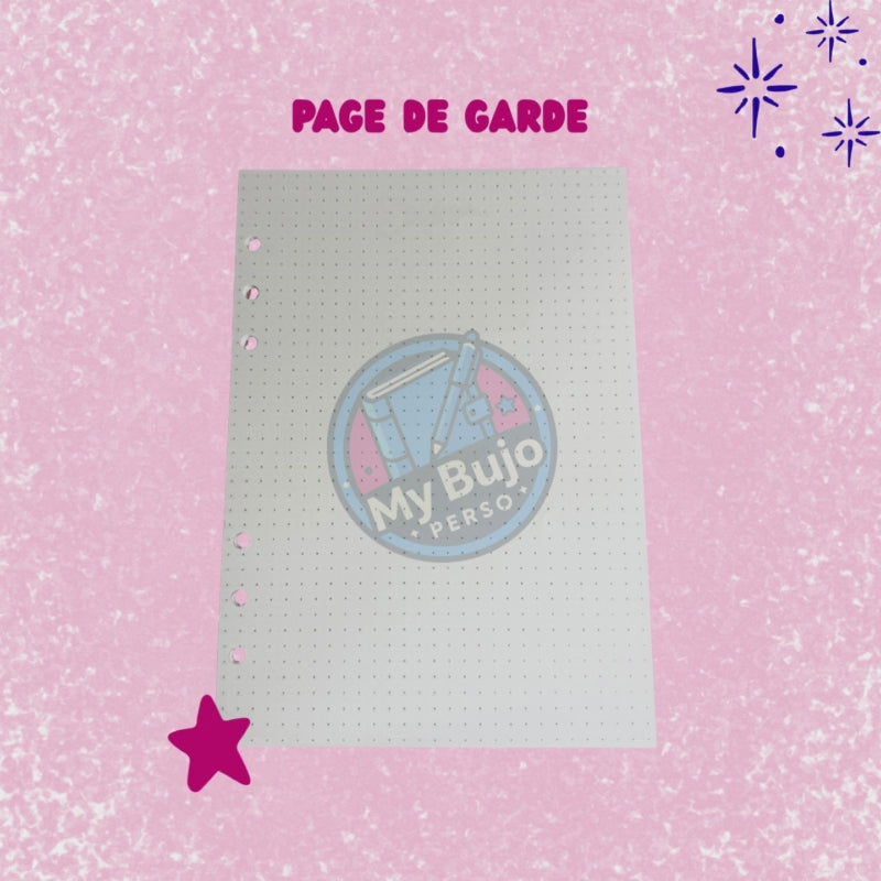 • Un classeur format A5 (couleur au choix), élégant et pratique, avec un système d’anneaux pour ajouter, retirer ou déplacer tes pages.